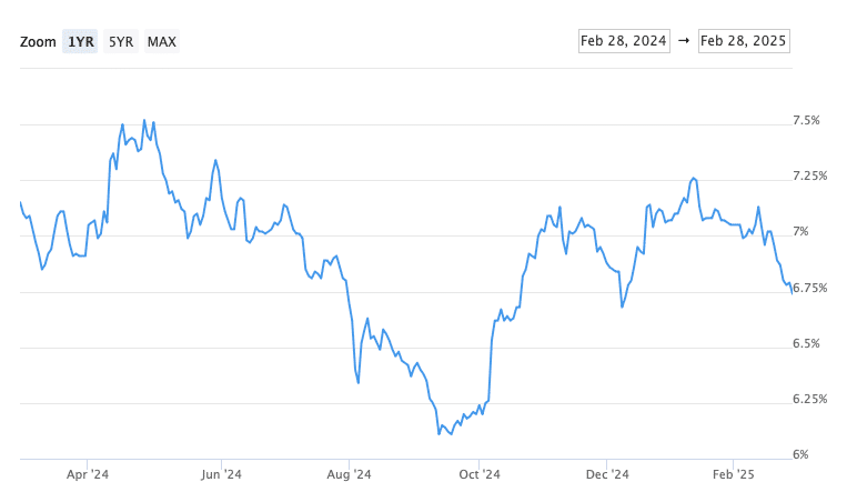 •Stock markets are still dropping (good for rates): Tariffs, talks of recession and uncertainty in the economy are likely driving the last 2 months of falling stocks. The S&P500 was down 1.5% in February and is down another 6.2% in March. When markets drop, we see a “flight to safety,” which usually means bonds (including mortgage back securities). As investors buy bonds, that pushes the yield (and rates) down.
